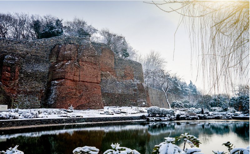 四十八景は千年間の修繕と交替を繰り返し、新古様々である。雪後の江渚平野の見渡す限りの奇景——石城霁雪。長江の治水工事により景観が変わってしまったが、雪後の晴れた日の石頭城からの眺めは、赤岩と白雪が互いに映り合い、池は結氷しており、他の季節のように青々とした緑は見えないが林海雪原の趣がある。